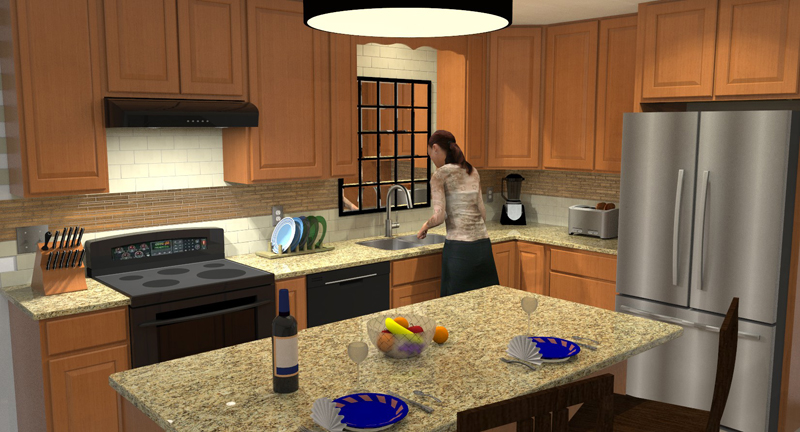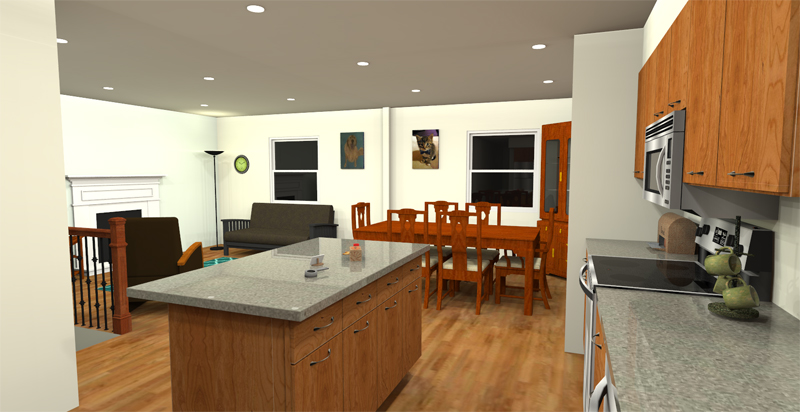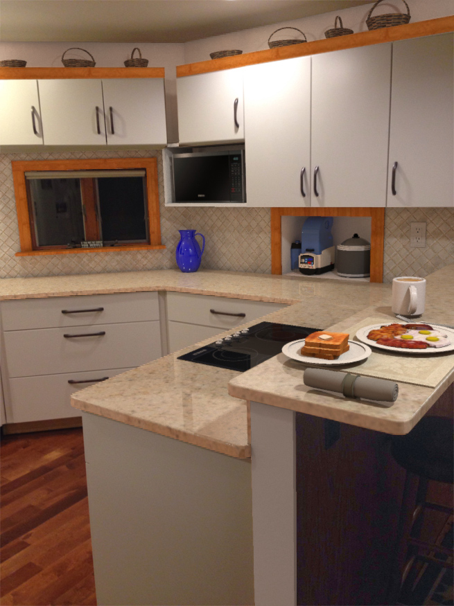 Everything you see below was rendered from 3D models using software such as Sketchup, Raylectron, Thea Render, and Skatter. We can also provide virtual walkthrough capability using Oculus Rift. With prior arrangements, typical projects take 1-2 days from measurements to first image delivery. In many cases we can provide close if not exact matches to your desired surfaces, materials, and furniture. We can work from rough sketches, photographs, and architectural plans.
